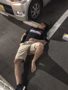 酔っ払って駐車場の柵に突っ込む毛んじ!